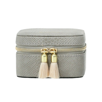 タッセルジッパー空のパーソナライズされたミニレタートラベルグレー合成PUレザージュエリーボックスカスタムロゴ付き