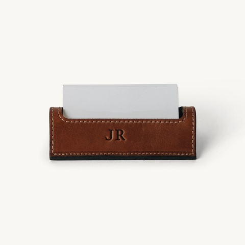 オフィスデスク用スタンドホルダー卸売カスタムデザインエンボス加工ビジネス牛革革カードディスプレイ